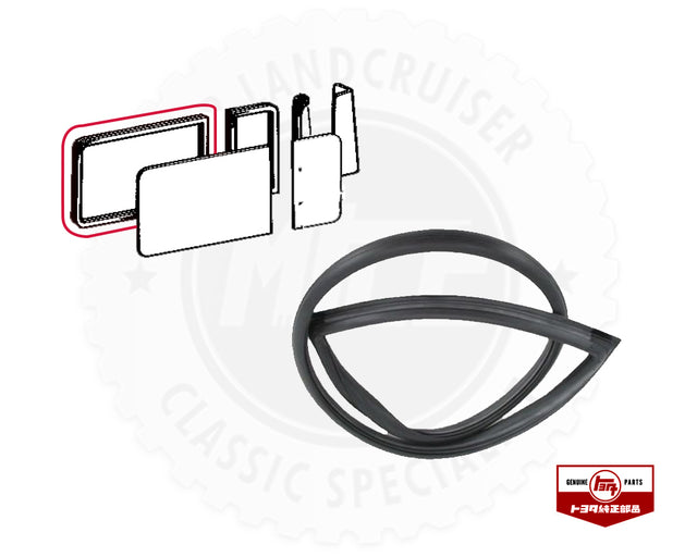 Denne ægte Toyota-forsegling er til den store faste sidevindue, som findes på den hårde top Short-Wheel Base og Troopcarrier 40 Series Landcruisers.